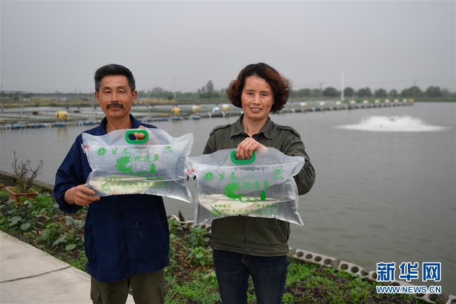 5月15日,在南浔区菱湖镇盛江家庭农场,农场主盛素红(右)与丈夫展示即将发货的“跑道鱼”。 近年来,浙江省湖州市南浔区积极推广“跑道养鱼”模式,推动渔业养殖业转型升级,取得良好生态效益和经济效益。 据了解,“跑道养鱼”是一种池塘内循环养殖模式,将传统养殖池塘进行改造,利用池塘面积的5%左右建设循环流水养殖水槽进行高密度养殖,其余池塘面积对养殖尾水进行净化处理,实现养殖尾水“零排放”或达标排放。同时,池塘“跑道”中水体一直保持流动,鱼儿保持逆流游泳的姿态,在静水池塘中实现流水养鱼的效果。 新华社记者 黄宗治 摄