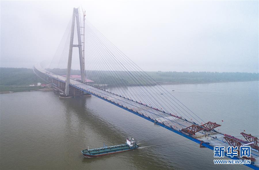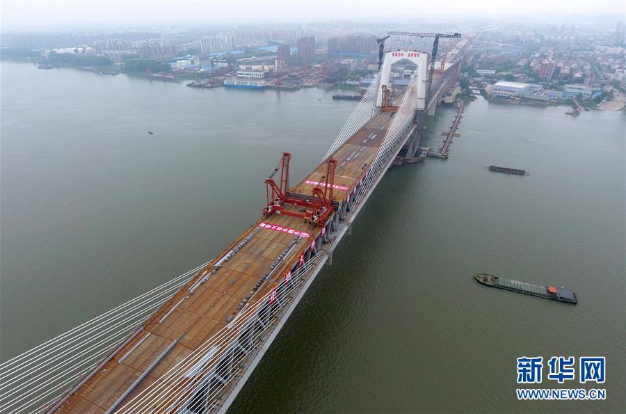 5月16日,武汉青山长江大桥顺利合龙(无人机拍摄)。 当日,随着现场工人完成最后一段钢箱梁的焊接,武汉青山长江大桥实现合龙。 作为武汉四环线的重要控制性工程,武汉青山长江公路大桥全长7548米,主跨938米,桥宽48米,为目前跨越长江桥面最宽的桥梁。大桥建成后,对于优化武汉“环线+射线”路网结构、打造中部地区现代物流基地等都具有重要意义。 新华社记者 肖艺九 摄