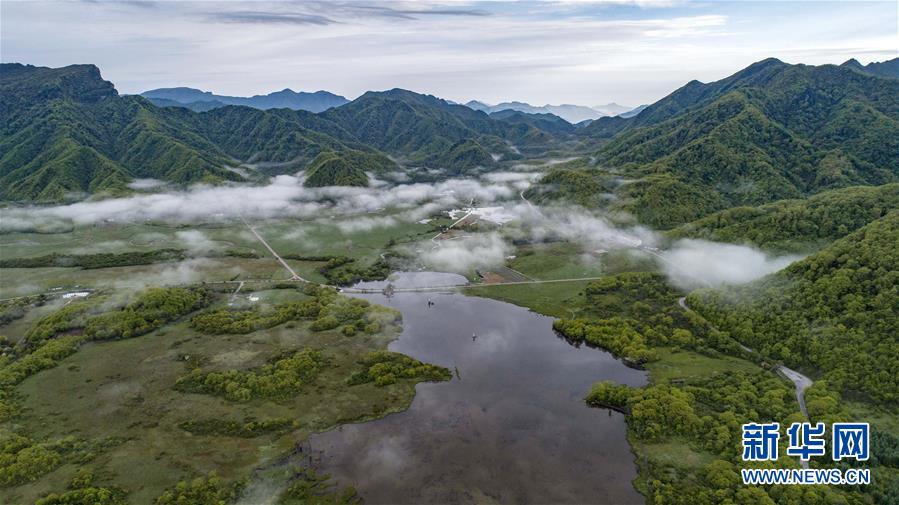 神农架大九湖高山湿地风光(5月16日无人机拍摄)。