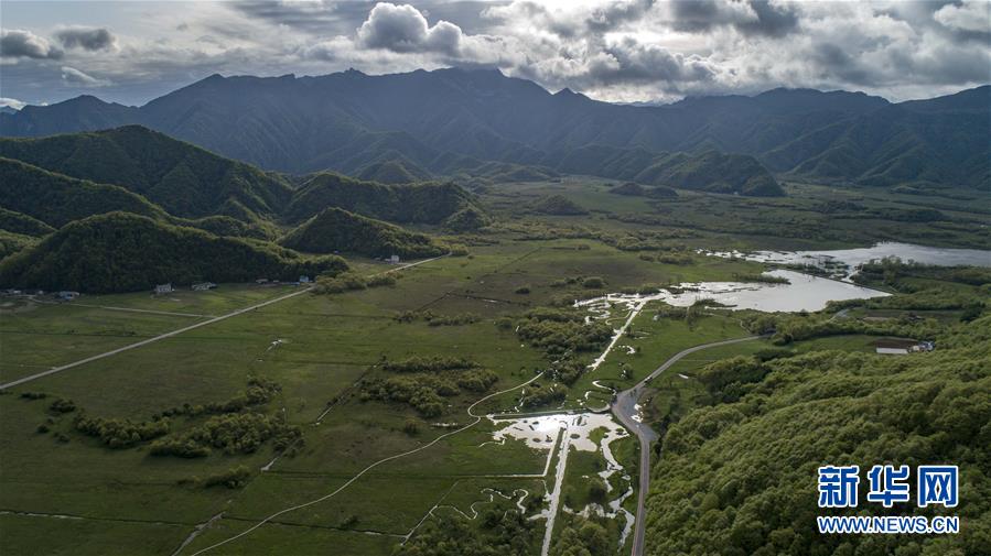 神农架大九湖高山湿地风光(5月16日无人机拍摄)。