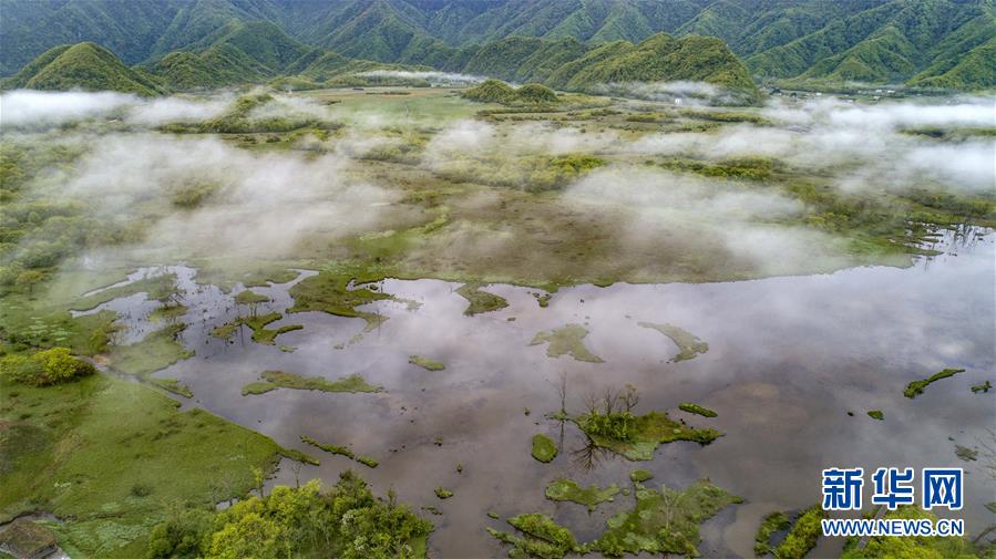 神农架大九湖高山湿地风光(5月16日摄)。 在“华中屋脊”湖北神农架深处有一片高山湿地,一条小溪串起9个湖泊,故名“大九湖”。这里群山环绕,风光秀丽,宛如世外桃源。 新华社记者 刘莲芬 摄