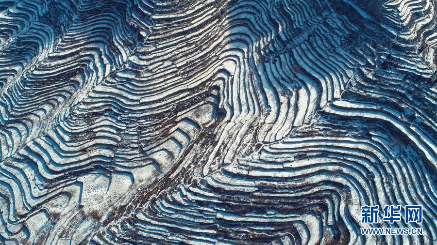 近日,河北邯郸市涉县普降小到中雪,雪后的涉县梯田美景如画。 新华社记者王晓摄