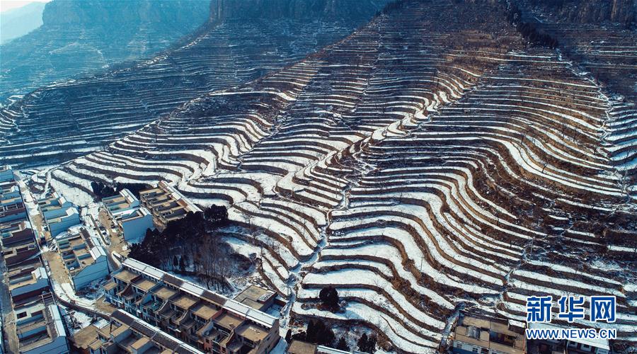 这是2月12日无人机拍摄的河北涉县王金庄梯田雪景。新华社记者王晓摄
