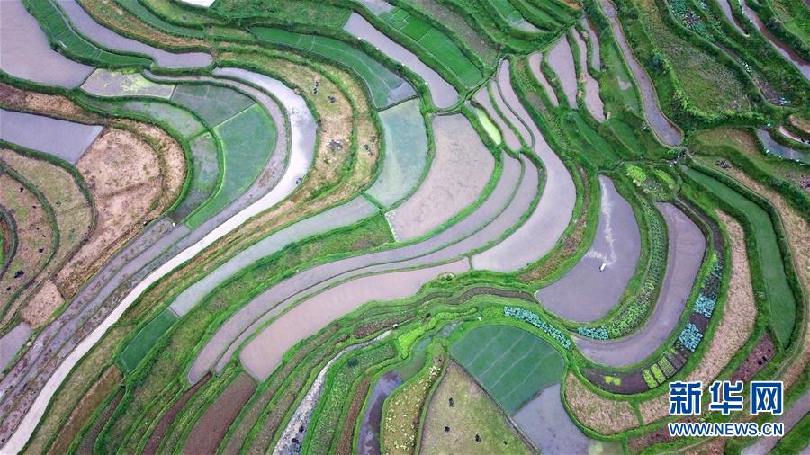 这是5月18日无人机拍摄的贵州省丹寨县龙泉镇高要梯田景色。 初夏时节,位于贵州省丹寨县龙泉镇的高要梯田景色优美。 新华社记者 杨文斌 摄