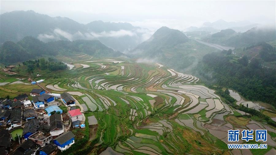 这是5月18日无人机拍摄的贵州省丹寨县龙泉镇高要梯田景色。 初夏时节,位于贵州省丹寨县龙泉镇的高要梯田景色优美。 新华社记者 杨文斌 摄