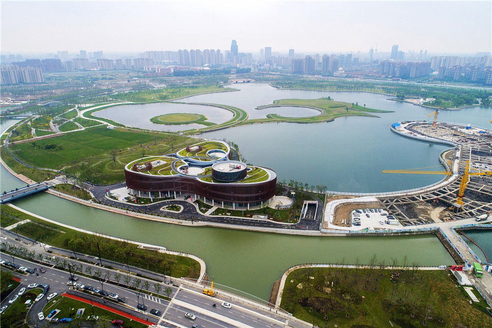 2019年5月18日,上海,奉贤博物馆新馆已于5月16日正式开馆,开馆的第一个展“雍正故宫文物大展”将对外开放。由国际设计大师、迪拜“棕榈岛”主创设计师拉瑞.奚伯斯设计的奉贤区金海湖正在建设中,占地60万平方米的金海湖仅次于滴水湖的人工湖,它将连接黄浦江和东海,是未来奉贤的标志。陈明松/视觉中国