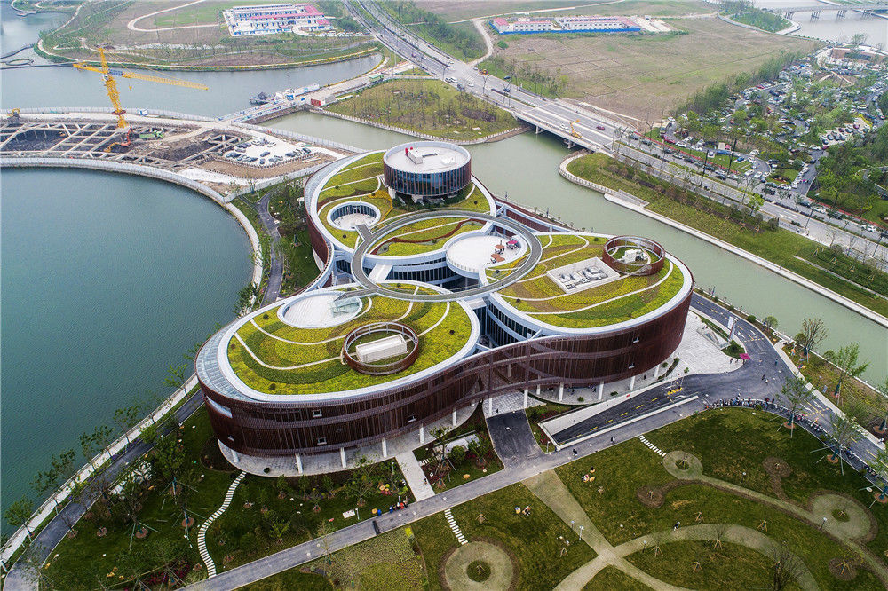2019年5月18日,上海,航拍奉贤博物馆新馆。