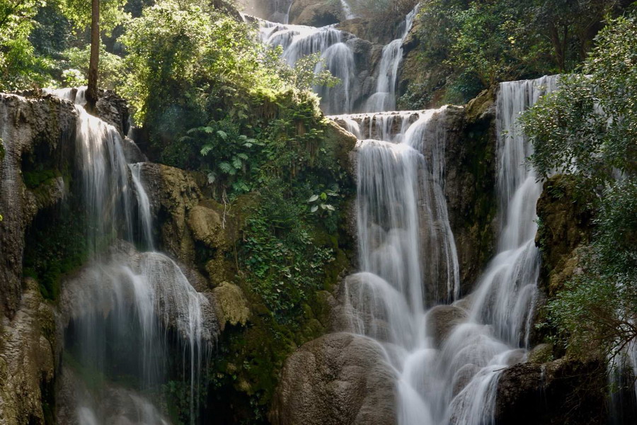 光西瀑布是一个瀑布群,位于琅勃拉邦以南30多公里的原始森林中,其中一处高40多米,虽然水量不大,但有一种天然的涓细之美,不同凡响。