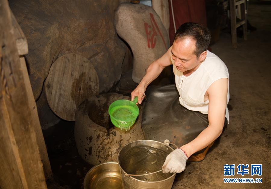 5月21日,郑国荣在“古越剑铺”打井水准备为宝剑淬火。他说淬火用的水很重要,正是看中了这口井他才把工作室设在这里。 新华社记者 翁忻旸 摄