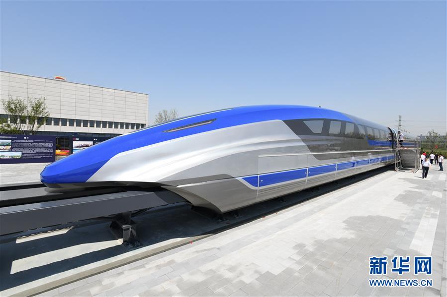 5月23日在青岛拍摄的我国时速600公里高速磁浮试验样车。新华社记者李紫恒 摄