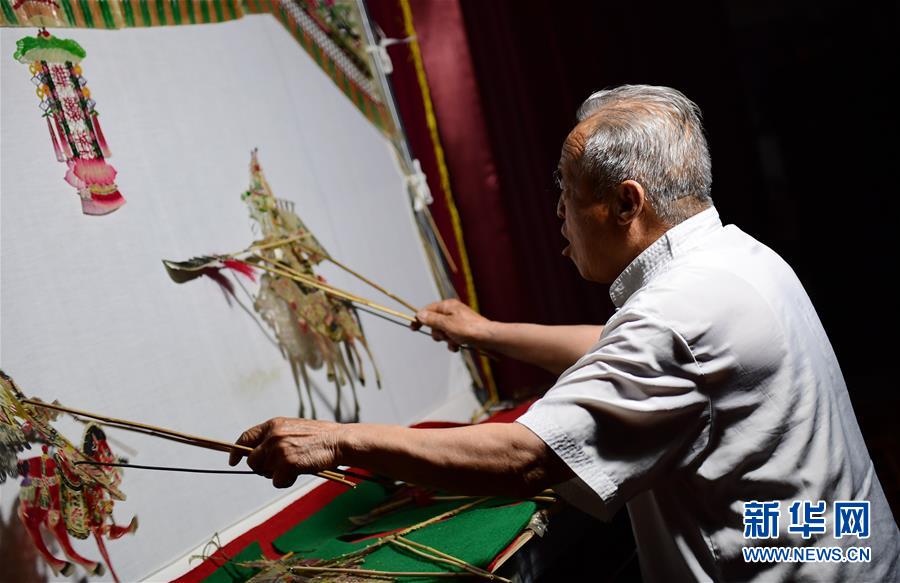 5月23日,华州影子坊皮影团的演员表演丝绸之路主题创新皮影戏。陕西省渭南市华州区是皮影戏艺术重要源头之一。2006年,皮影戏被列入首批国家级非物质文化遗产保护名录。传统华州皮影制作选用上等牛皮为原料,经过刮、磨、洗、刻、染等24道工序精工细作,一件成品需要刻三四千刀才能做成。传统华州皮影戏由5个人来操纵皮影及多种乐器来表演。如今,华州皮影在保护传统的同时进行改良和创新。华州皮影艺人薛宏权在皮影制作中引入工笔画手法,开发出皮影摆件、挂件、首饰等文创产品,在皮影戏剧目内容编排上,开发出皮影芭蕾舞、皮影迈克尔·杰克逊等全新的表演内容,使乡土气息浓郁的皮影戏变得时尚现代。新华社记者李一博摄