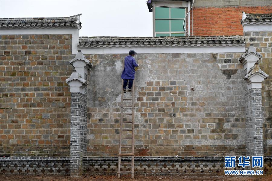4月28日,在江西省南昌市南昌县冈上镇省级文物保护单位“吴氏家庙”内,抢修工程队的工人在现场施工。近年来,江西省南昌市南昌县推动古村落保护工作。2019年,首批抢修工程队进驻南昌县冈上镇,对当地知名的省级文物保护单位“吴氏家庙”及县级文物保护单位“吴培荆堂古建筑群”进行抢救性维修。同时当地政府还制定文旅规划,让文物保护与观光旅游相结合,推动乡村振兴。 新华社记者 彭昭之 摄