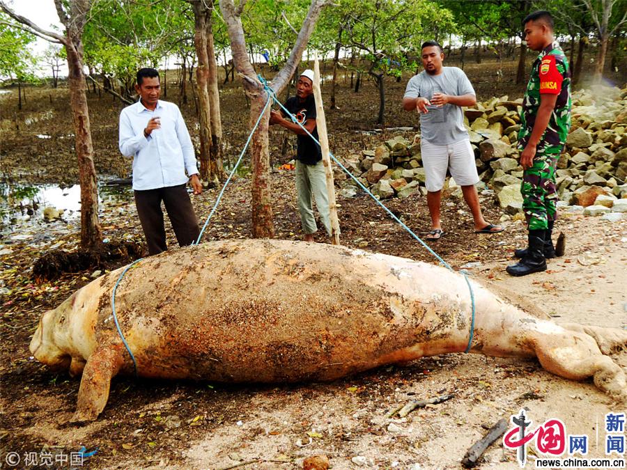 当地时间2019年1月28日,印尼Karimun岛,一只身长3.5米、重500公斤的儒艮搁浅死亡。据估计,儒艮死于环境破坏。Barcroft Media/视觉中国
