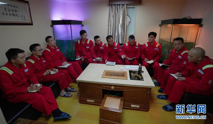 5月24日,“南海二号”各部门负责人在举行每日工作例会。新华社记者 王毓国 摄