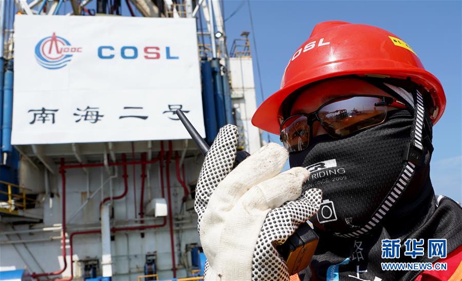 5月25日,“南海二号”平台船长安兴国在甲板作业时,将面部包裹起来,防止皮肤长时间暴露被强紫外线晒伤。据介绍,甲板在夏日阳光暴晒后,温度最高可达70摄氏度。 新华社记者 王毓国 摄