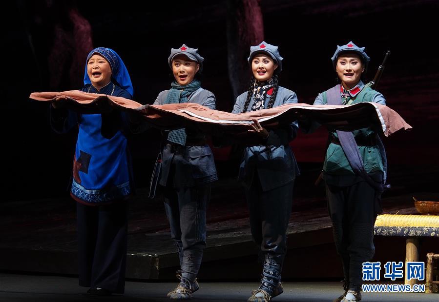 5月27日,演员在上海美琪大戏院表演现代京剧《红军故事》 。 新华社记者 任珑 摄
