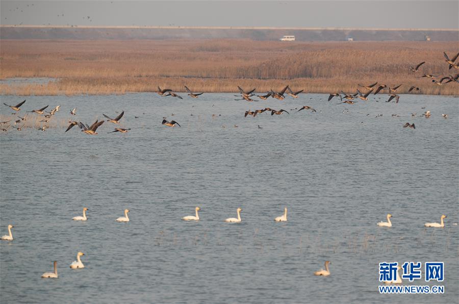 候鸟在上海市崇明东滩鸟类国家级自然保护区越冬(2017年12月20日摄)。 新华社记者丁汀摄