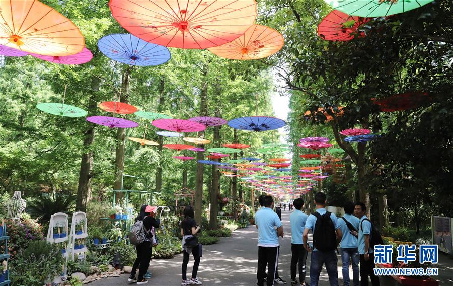 5月22日,游客在上海市崇明区东平国家森林公园内游览。新华社记者方喆摄