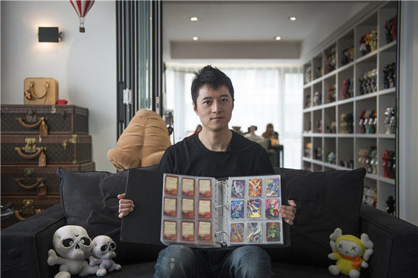 2018年5月25日,杭州,俞先生,室内设计师,资深收藏迷。在杭州西湖边吴山广场附近,他买下近200平方米的房子,自己设计装修,专门用来存放从世界各地收来的藏品。一张他当年花10元从同学手里买来的限量卡,如今已价值两万多元。来源:视觉中国