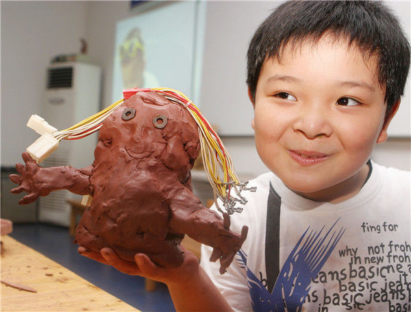 2005年7月21日,进城务工就业子女工艺制作培训活动在杭州青少年活动中心,制作的鸵鸟、窗帘、蜘蛛网等各种小物品处处显示了孩子们超凡的灵感。