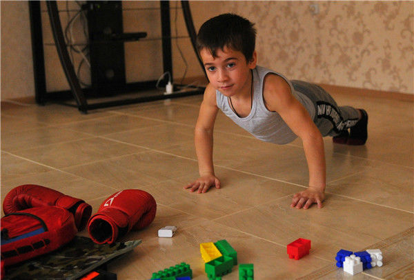 当地时间2018年11月15日,俄罗斯联邦车臣共和国,5岁的Rahim Kuriev耗时2小时29分完成了4105个俯卧撑,获车臣领导人拉姆赞卡德罗夫(Ramzan Kadyrov)赠送奔驰汽车。