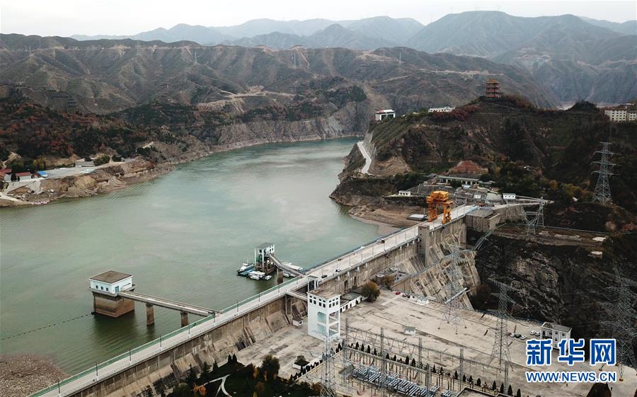 这是10月24日无人机拍摄的刘家峡水库库区和水库大坝。 新华社记者 陈斌 摄