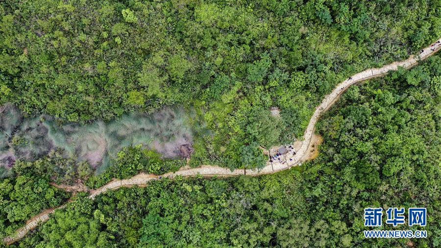 6月1日拍摄的蜿蜒于凤凰山间的香山古驿道(无人机拍摄)。