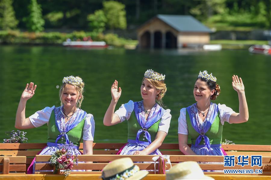 6月2日,在奥地利中部小城巴特奥赛,“水仙皇后”和“水仙公主”参加水上花船巡游。 当日,奥地利第60届水仙花节水上巡游活动在中部小城巴特奥赛举行。一年一度的水仙花节是奥地利规模最大的以鲜花为主题的民间节日,每年吸引大量游客前来。 新华社记者 郭晨 摄