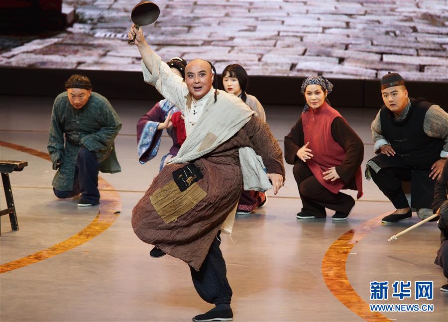 6月2日,获得文华表演奖的演员梁伟平在第十二届中国艺术节闭幕式上汇报演出淮剧《武训先生》选段。 新华社记者 任珑 摄