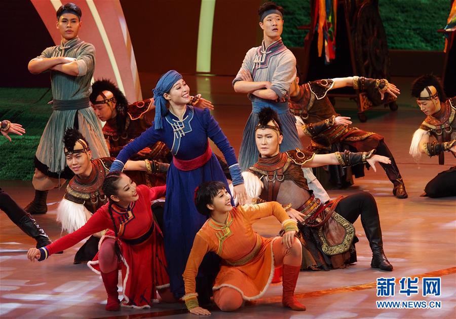 6月2日,内蒙古艺术学院演员在第十二届中国艺术节闭幕式上汇报演出获得文华大奖的舞剧《草原英雄小姐妹》选段。 新华社记者 任珑 摄