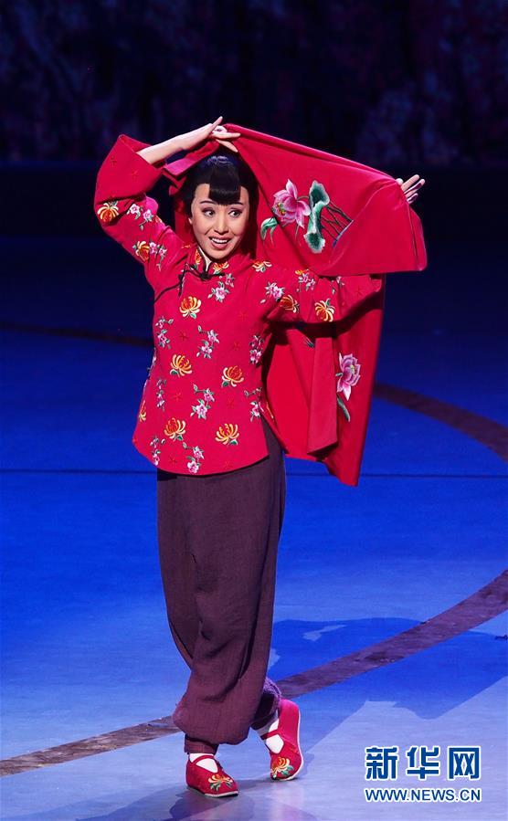 6月2日,获得文华表演奖的评剧演员王平在第十二届中国艺术节闭幕式上汇报演出。 新华社记者 任珑 摄