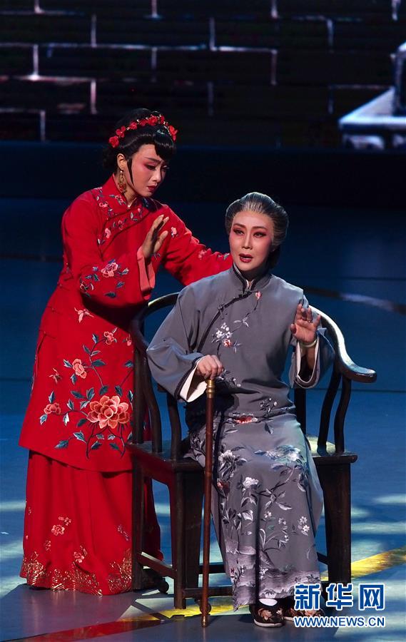 6月2日,苏州市苏剧传习保护中心演员在第十二届中国艺术节闭幕式上汇报演出获得文华大奖的苏剧《国鼎魂》选段。 新华社记者 任珑 摄