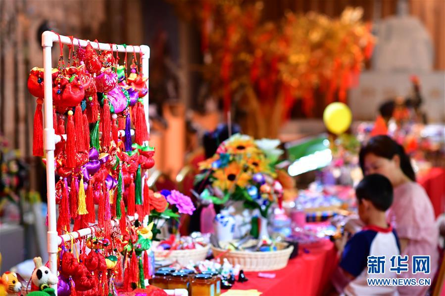 在郑州市非物质文化遗产展示馆里展示的香包(6月2日摄)。 新华社记者 冯大鹏 摄