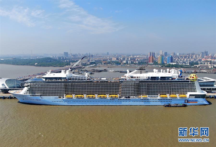 6月3日,“海洋光谱号”邮轮靠泊在上海吴淞口国际邮轮港(无人机拍摄)。 当日,经过为期47天的环球之旅,皇家加勒比邮轮“海洋光谱号”搭载近5000名国际游客靠泊上海吴淞口国际邮轮港,这也是自2011年上海吴淞口国际邮轮港开港以来迎来的第2000艘次母港邮轮。 新华社记者 陈飞 摄