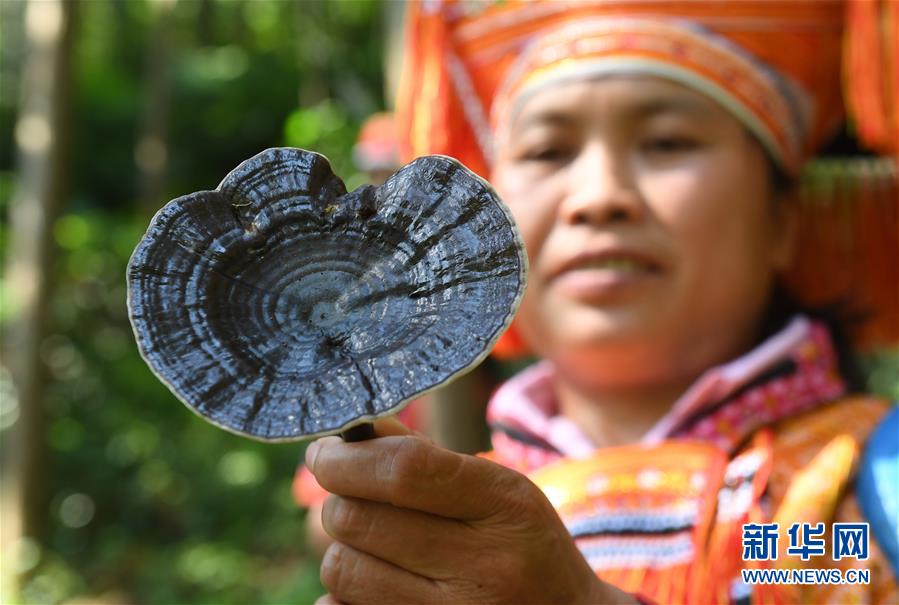 6月3日,在广西金秀瑶族自治县长垌乡长垌村,一名村民展示刚采摘的灵芝。 新华社记者 陆波岸 摄