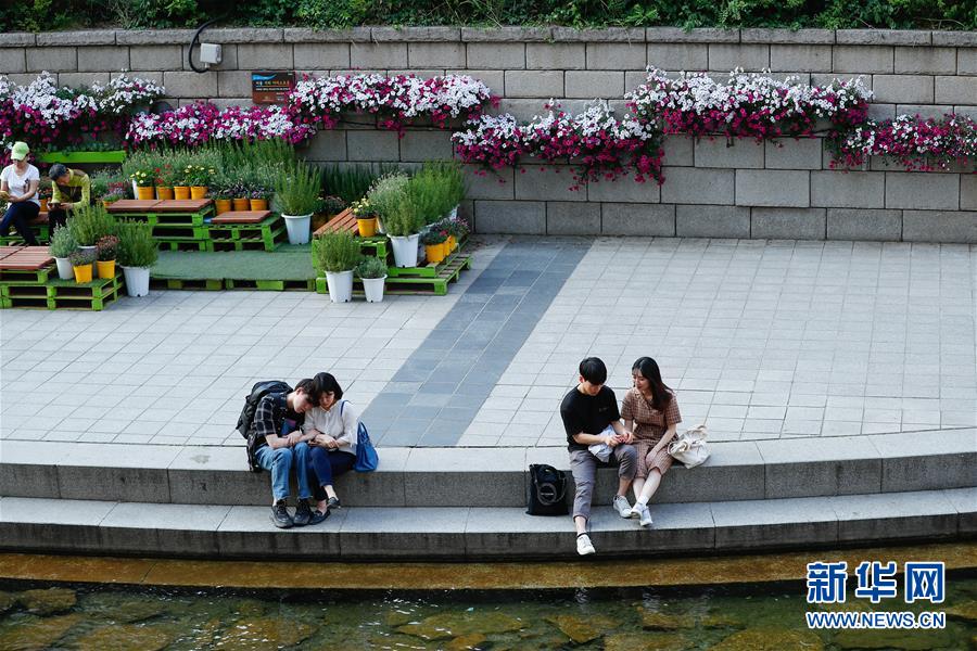 这是2019年6月2日,在韩国首尔,情侣在清溪川边休息。清溪川曾遭受严重污染,一度成为“臭水沟”,后又被盖入地下,建立高架桥。首尔市从2002年7月起启动清溪川复原工程,经过3年多的建设,清溪川重新出现。据称,重生的清溪川还可以调节首尔的气温,是一条名副其实的自然生态河流。新华社记者王婧嫱摄