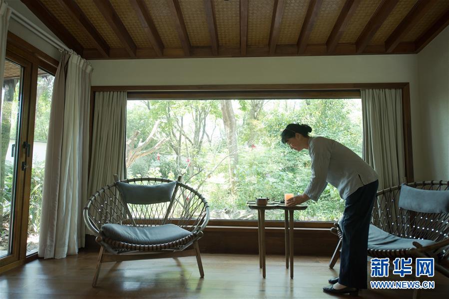 6月4日,工作人员在“小瘾·半日村”一家民宿内清扫房间。新华社记者翁忻旸摄