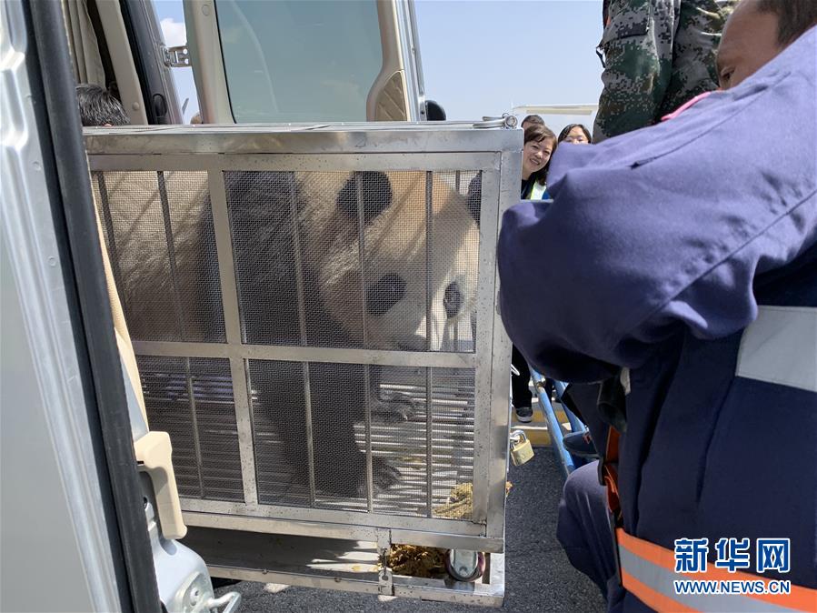6月5日,工人在搬运抵达青海西宁曹家堡机场的大熊猫。 新华社记者 吴刚 摄
