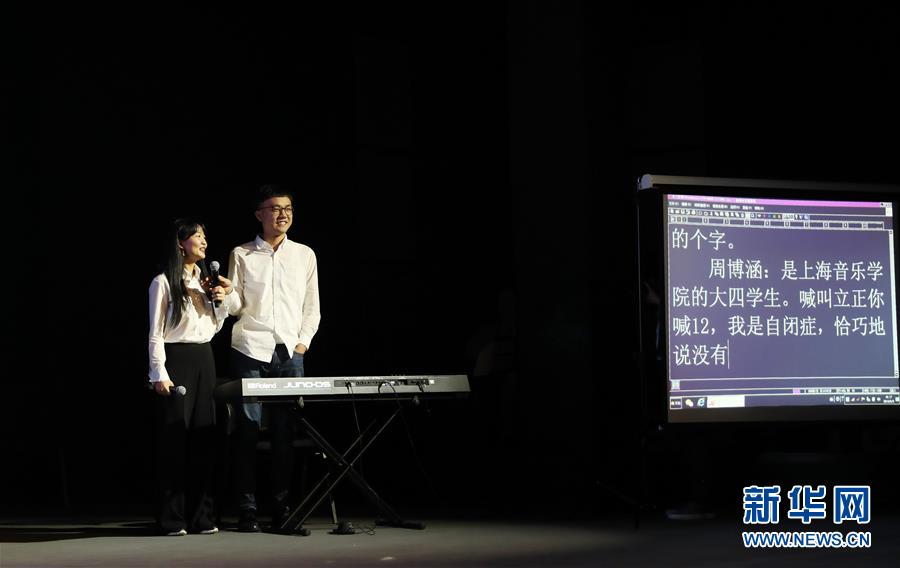 6月5日,自闭症钢琴演奏师周博涵(右)在故事汇现场与观众交流。新华社记者 方喆 摄