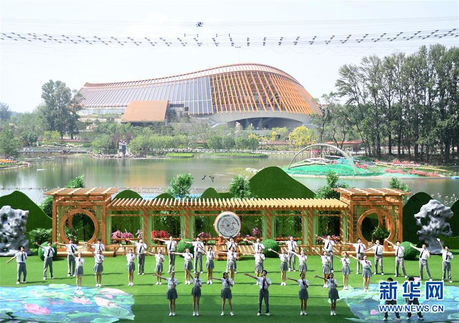 6月6日,演职人员在“中国国家馆日”文艺演出上表演。 当日,2019年中国北京世界园艺博览会“中国国家馆日”活动在北京世园会园区举行。 新华社记者 张晨霖 摄