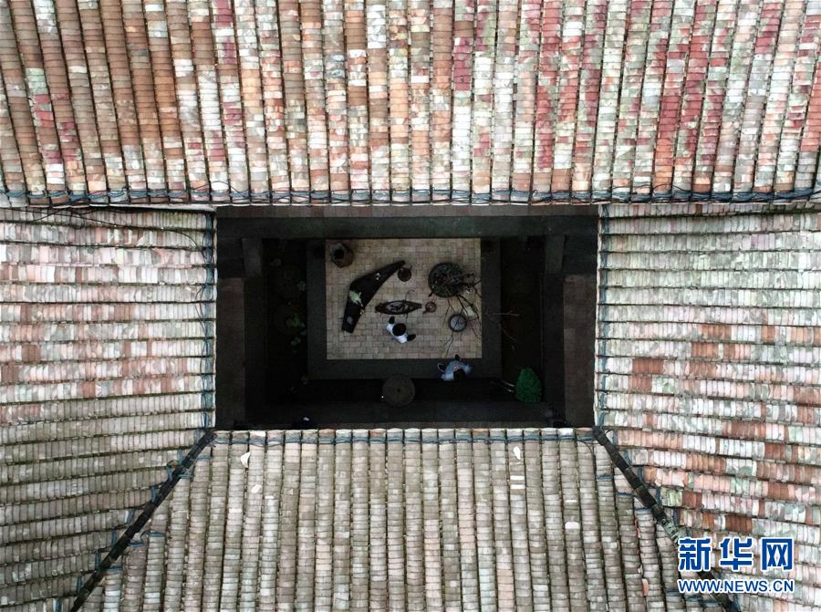 在万载古城的一家以手工艺品为主题的民宿内,住客在天井欣赏手工艺品(6月6日无人机拍摄)。 近年来,江西省万载县大力推进文旅融合,充分利用万载古城祠堂集群优势,以特色民宿为依托,打造以传统手工艺、文化创意、美食餐饮、休闲娱乐为主的旅游文化,吸引游客“愿留下”“尽兴玩”。 新华社记者 彭昭之 摄