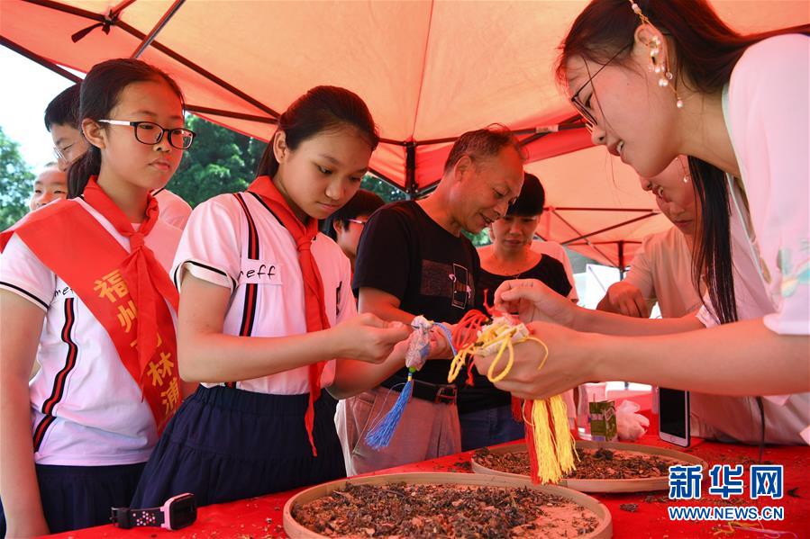 当日,以“古村端午会 粽香好佳节”为主题的2019年福州市“我们的节日·端午”仓山区主场活动在仓山区林浦村举办,当地群众以各种方式喜迎传统佳节。 新华社记者 姜克红 摄