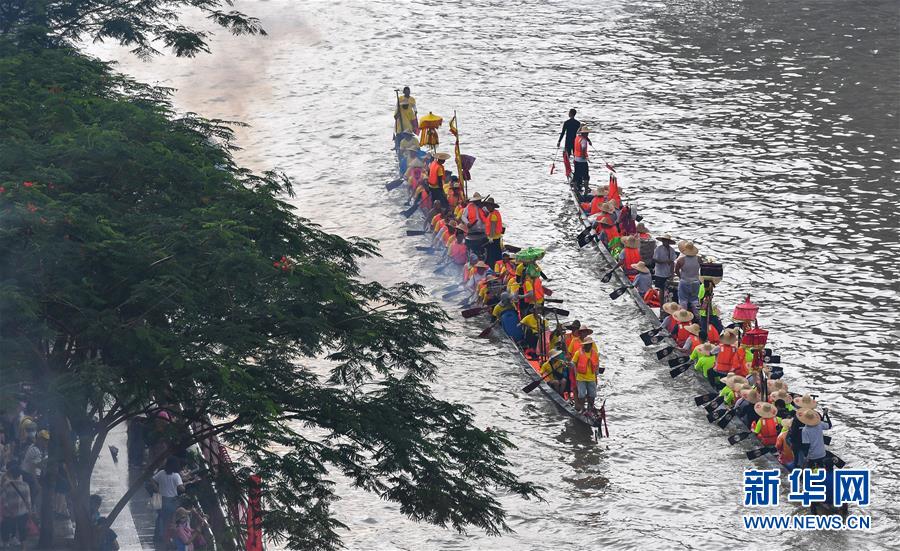 各村的龙舟沿着珠江陆续来到车陂涌“趁景”(6月5日摄)。新华社记者刘大伟摄
