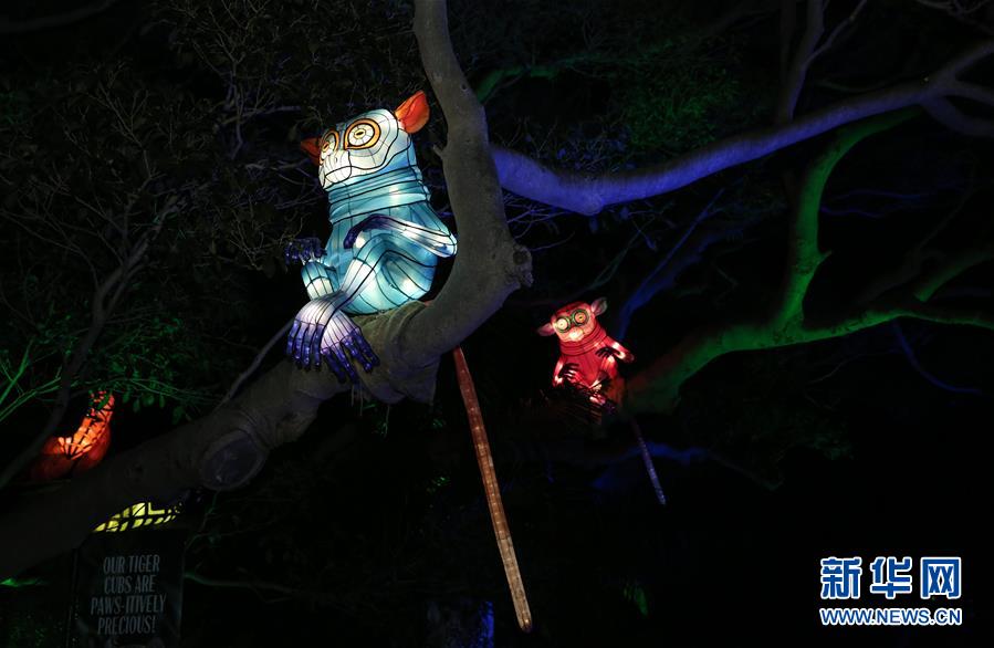 这是6月8日在澳大利亚悉尼塔朗加动物园拍摄的动物造型花灯。新华社记者 白雪飞 摄