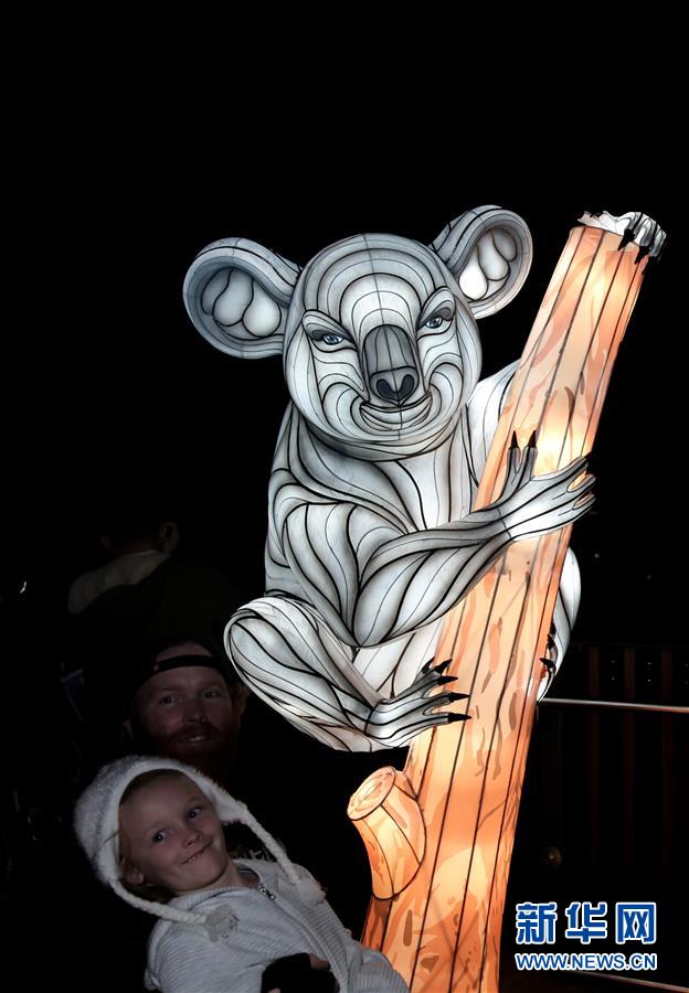 6月8日,在澳大利亚悉尼塔朗加动物园,游客参观考拉造型花灯。新华社记者 白雪飞 摄