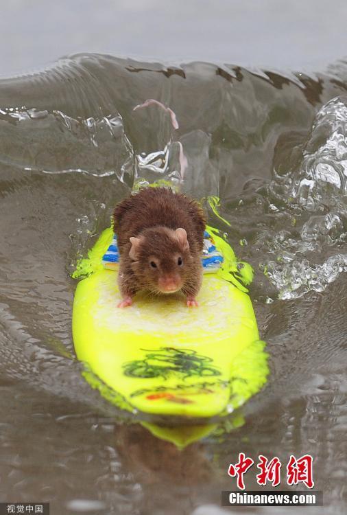 图为当地时间2010年6月28日消息,澳大利亚的肖恩·威尔莫特(Shane Willmot)有一个奇特的爱好,那就是训练老鼠在海上冲浪。目前他的冲浪鼠已经是第三代了。图片来源:视觉中国