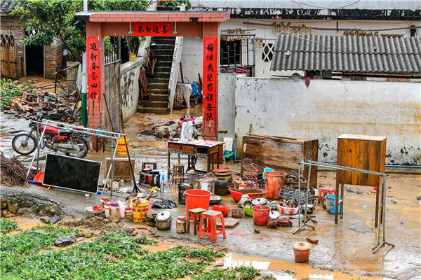 2019年6月11日,广东省河源市连平县上坪镇居民在屋内家具搬出室外清理。据广东省河源市防汛防旱防风指挥部办公室统计,截至6月11日,暴雨导致河源全市63个乡镇不同程度受灾,因灾死亡7人,失联1人,受伤3人,受灾人口11.455万人,倒塌房屋956间,转移人口1.454万人。 其中,连平县部分乡镇受灾较严重,因灾死亡6人(4女2男),直接经济损失约1.5亿元人民币。