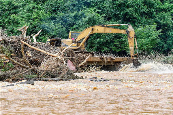 2019年6月11日,挖掘车在广东省河源市连平县上坪镇清理河道内的杂物。据广东省河源市防汛防旱防风指挥部办公室统计,截至6月11日,暴雨导致河源全市63个乡镇不同程度受灾,因灾死亡7人,失联1人,受伤3人,受灾人口11.455万人,倒塌房屋956间,转移人口1.454万人。 其中,连平县部分乡镇受灾较严重,因灾死亡6人(4女2男),直接经济损失约1.5亿元人民币。