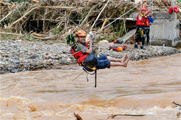 2019年6月11日,消防人员在广东省河源市连平县上坪镇转移被困居民。据广东省河源市防汛防旱防风指挥部办公室统计,截至6月11日,暴雨导致河源全市63个乡镇不同程度受灾,因灾死亡7人,失联1人,受伤3人,受灾人口11.455万人,倒塌房屋956间,转移人口1.454万人。 其中,连平县部分乡镇受灾较严重,因灾死亡6人(4女2男),直接经济损失约1.5亿元人民币。