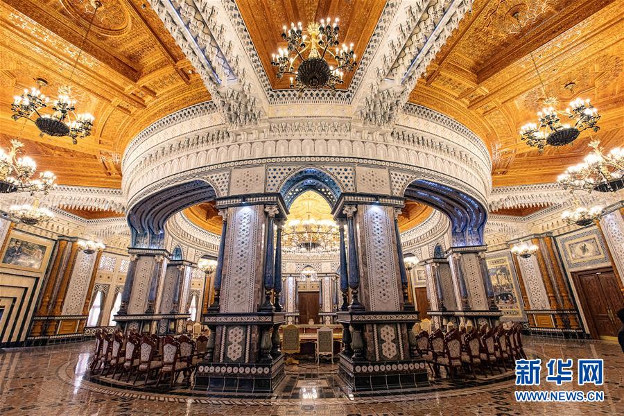 这是4月14日在塔吉克斯坦首都杜尚别拍摄的纳乌鲁兹宫阿尔章会议厅。 新华社记者白雪骐摄